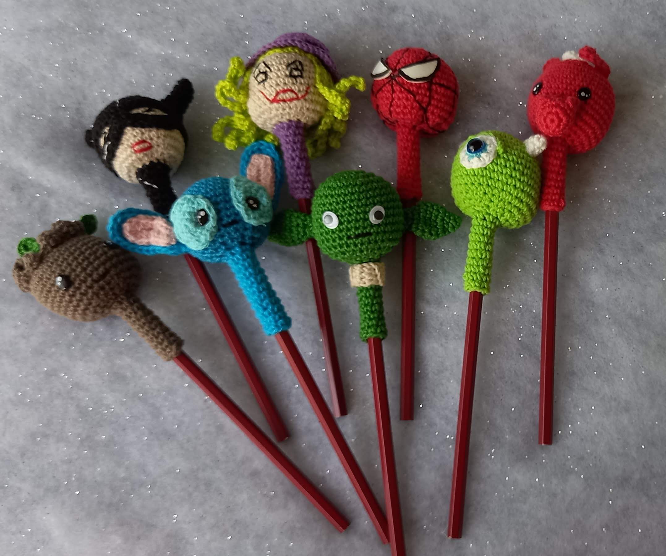 Ajoutez une touche de fantaisie à vos crayons avec ces adorables embouts crochetés à la main, représentant vos personnages préférés de dessins animés. Idéal pour les enfants, les fans ou pour égayer une trousse d’école !